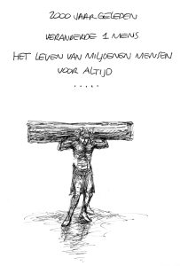 Jezus neemt in deze hele ontwikkeling dus de belangrijkste plaats in. Hij heeft de hoofdrol in deze strijd om mensenlevens op zich genomen. ‘Zie hier ben Ik om uw wil te doen, o God, in de boekrol staat over mij geschreven,’ lezen we in de Psalmen. In de brief aan de Hebreeën wordt deze uitspraak betrokken op Jezus. We horen hetzelfde uit Jezus’ mond als Hij in de nacht van zijn arrestatie worstelt met wat komen gaat en zich overgeeft aan zijn Vader: ‘Laat niet mijn wil maar uw wil gebeuren.’ Dat gebed wordt verhoord ter wille van ons. Wat onmogelijk leek heeft Hij mogelijk gemaakt. Paulus zal later over die wil schrijven: ‘Hij heeft ons voorbestemd om naar zijn wil en verlangen door Jezus Christus zijn kinderen te worden.’